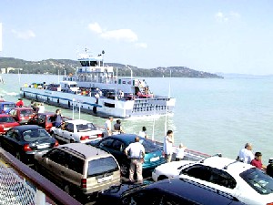 Zwischen den Orten Tihanyrév am Nordufer und Szántód am Südufer verkehrt die einzige Autofähre am Balaton. Sogar Lastwagen können hier per Schiff in 10 Minuten den Balaton überqueren.