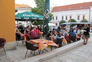 Von der Gästeterrasse aus bietet sich ein Ausblick auf den Kossuth-Platz, des schönsten Platzes von Kaposvár, Schauplatz regelmäßiger Veranstaltungen und Festivals, wie auch des jährlichen Weihnachtsmarktes, und Ausgangspunkt für jeden historischen Rundgang.