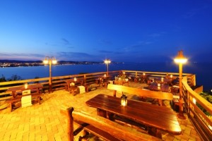 Von der Dachterrasse kann man bei einem guten Essen die atemberaubende Aussicht über den Balaton genießen.